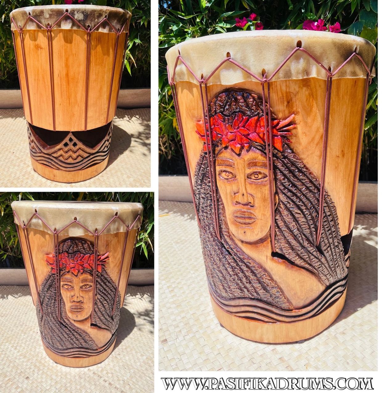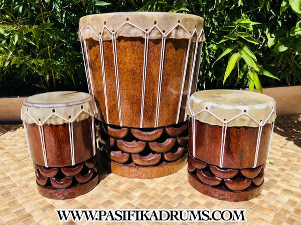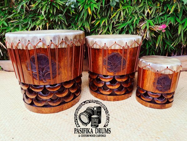 Apart from the standard Palm wood, We also offer a premium wood option. Made from a Mahogany wood (our "Go too" wood for carvings and urns), These Pahu come in all the sizes you see above.