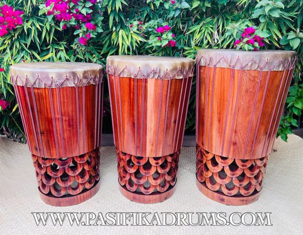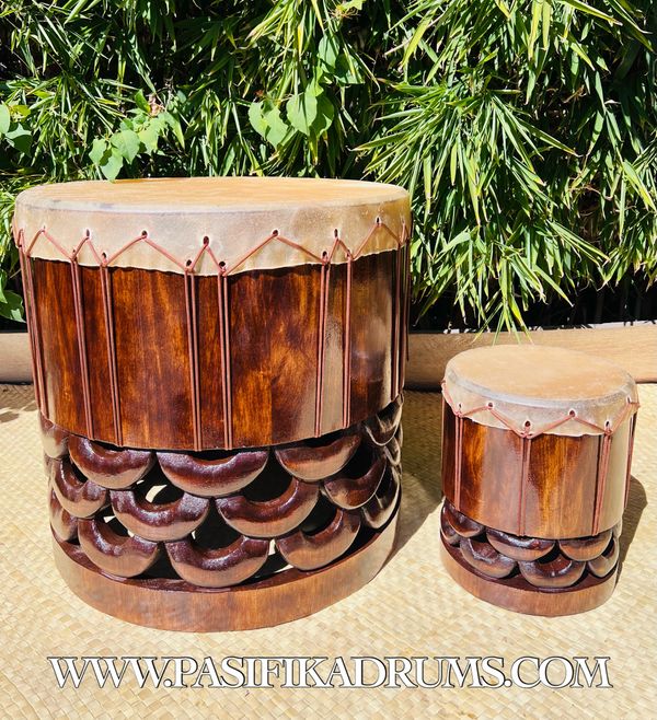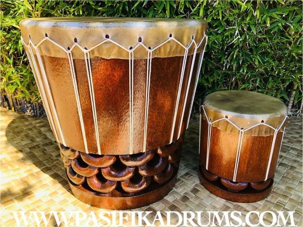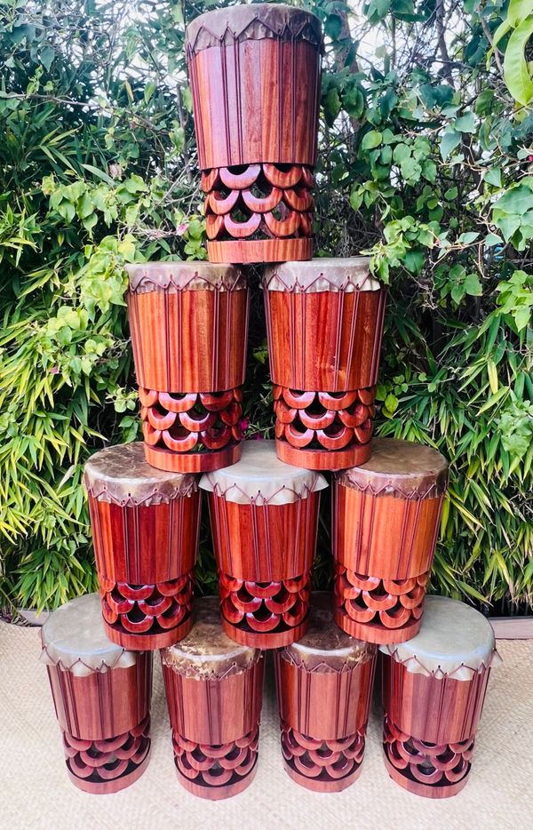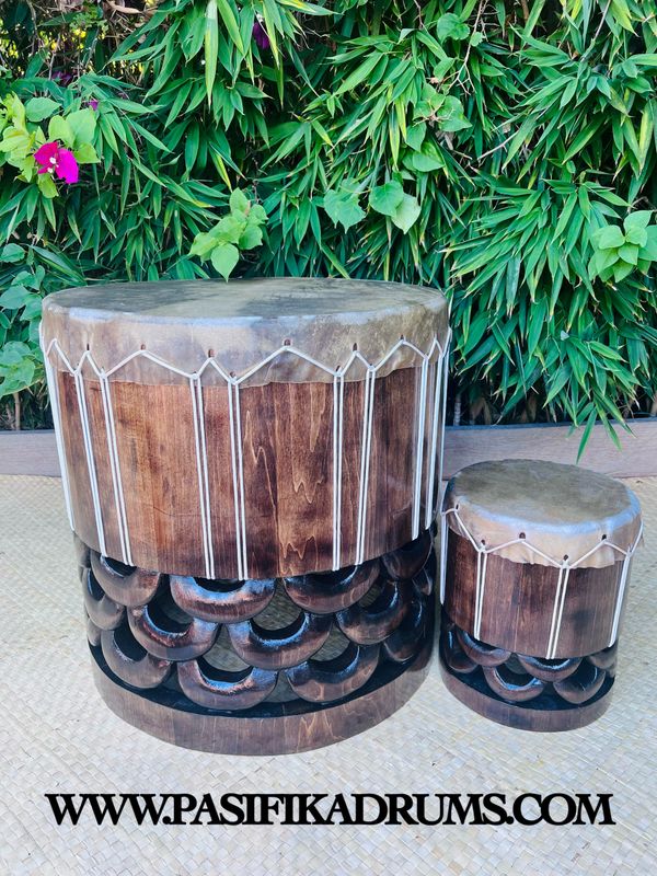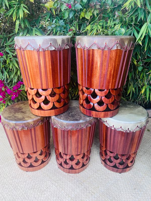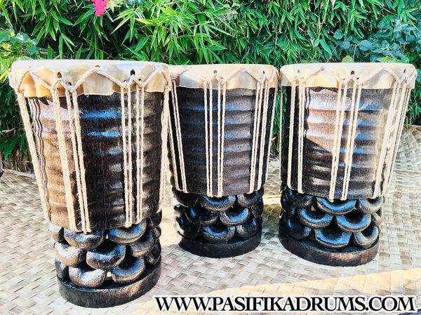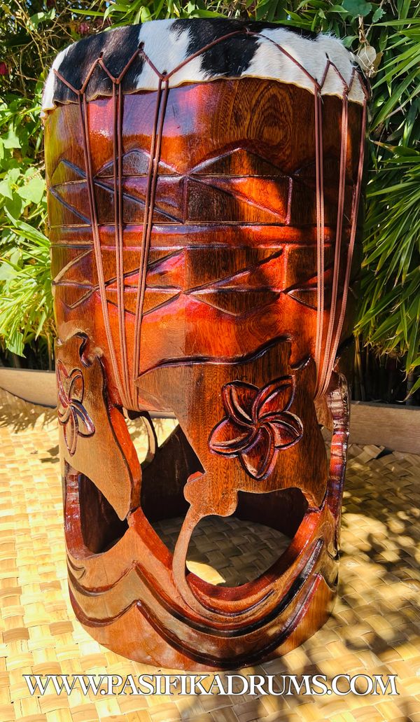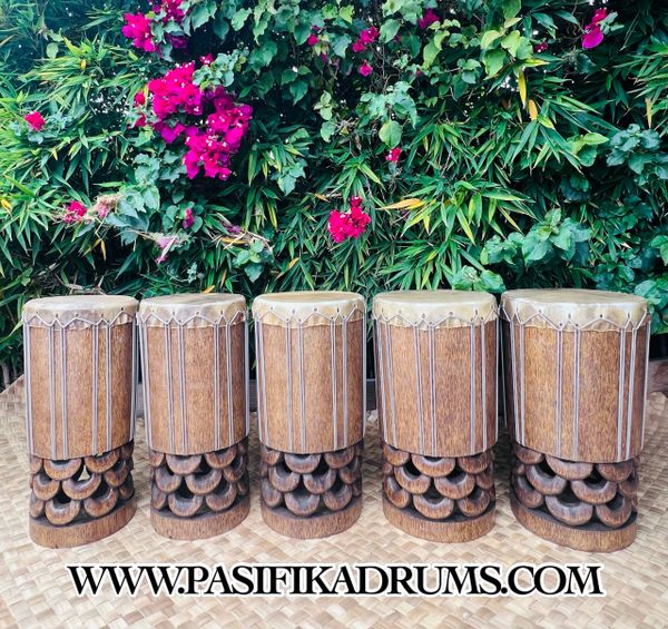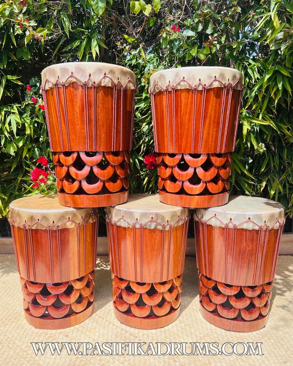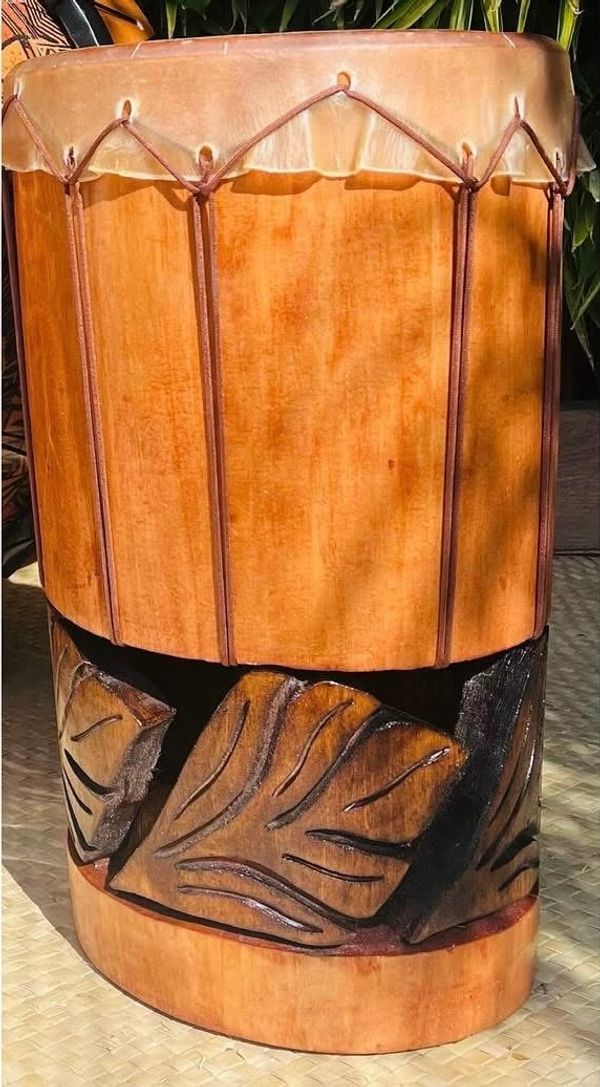 Hawaiian Pahu are truly a voice of their own in the Hula Kahiko world. Unlike Tahitian drums, the Hawaiian Pahu stands on its own as it leads a Halau. Usually made from palm tree (based on availability), we also have the option to source similar soft woods if the size of palm is not available. These options can be discussed upon order.